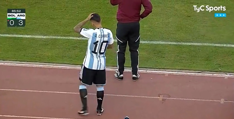 科雷亚曾在2023年9月世预赛时穿过10号球衣,当时阿根廷客场3-0战胜玻利维亚。