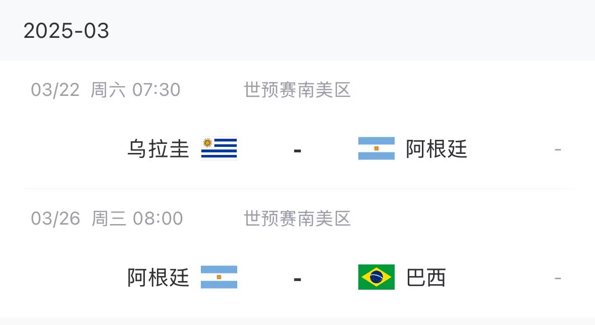 03月20日讯 阿根廷本月世预赛将先后迎战乌拉圭、巴西。